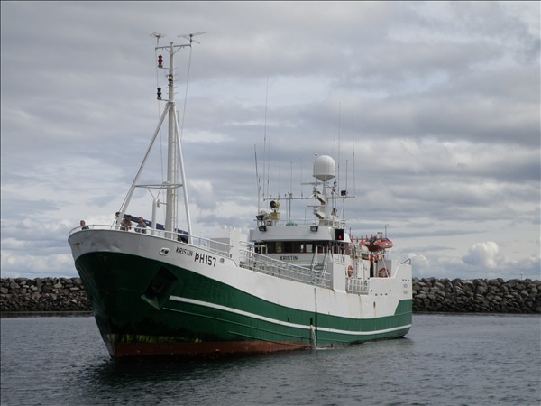 972. Kristín ÞH 157, skríður inn Stakksfjörðinn, með stefnu á Njarðvík