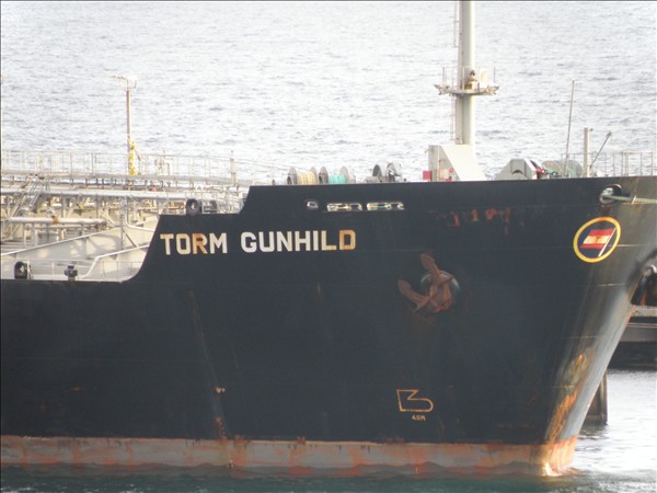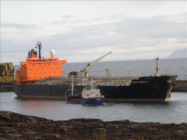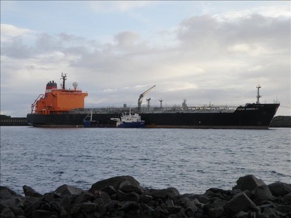 2304. Lauganes að leggjast að Torm Gunhild í Helguvík í morgun