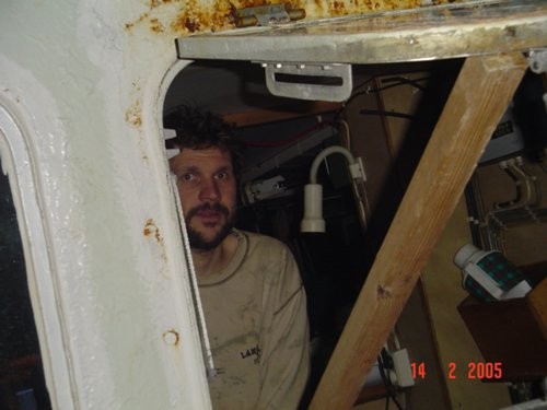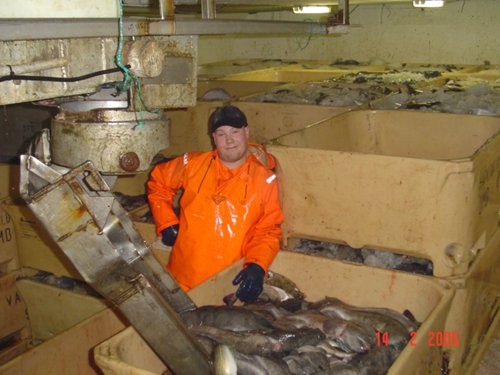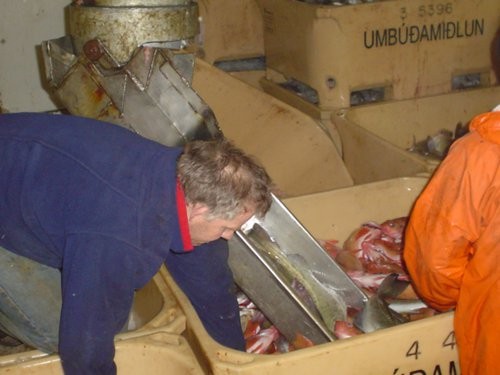 Skipper Gísli Hallgrímsson að kanna lestina hvað mikið lestarpláss eftir, en þegar birta fór að degi kipptum við og leituðum að ýsu og í þessum túr kipptum við Norður á Straumnesbanka. En þarna áttum við lestapláss fyrir einhver tíu tonn og var ætlunin að fylla upp með ýsu á Straumnesbankanum.