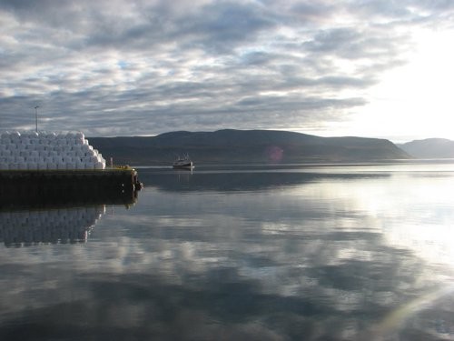 Hér komum við svo í morgun og eins og þið sjáið klikkar ekki veðrið á Bíldudal. Við lögðum af stað kl 2000 í gærkveldi frá Stykkishólmi og fengum gott veður alla leiðina og ferðin gekk bara vel. Í áhöfn voru undirritaður, Snæbjörn Árnason og Svanur Þór Jónsson