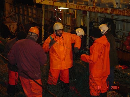 En það kom fyrir að við rifum og þá gat oft farið tími í súginn því steinbítur veiðist á á nóttunni á þessum árstíma en þetta er í feb aðeins á nóttunni. Svo þarna er bætingavinna í gangi hjá stýrimanninum og næturvaktinni.