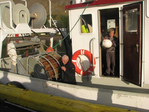 Hér sjáum við Bílddælinginn og sjálfstæðismanninn Páll Ágústsson en við vorum aðeins tveir Bílddælingar í áhöfn ég og Palli. Þeir sem þekkja ekki Palla þá er hann auðvita á spilinu að hífa.