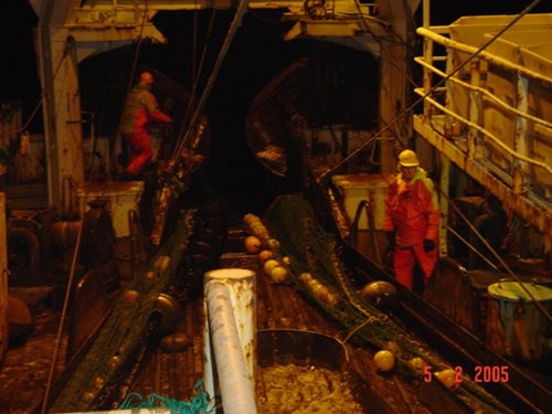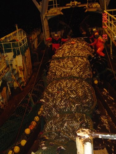 Þarna er pokinn kominn ca 2 til 3 tonn í en við toguðum yfirleitt ekki lengur en 30 til 40 mín á þessari bleyðu