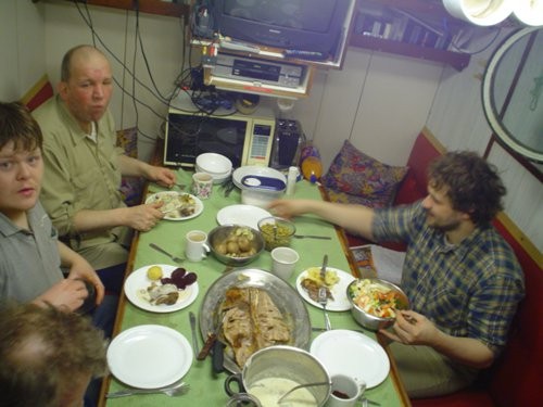 Sunnudagur um borð í Hallgrími lambahryggur í matinn ekki viss hvort hann var frá Eiríki eða Palla Magg held þó að hann hafi verið úr Bónus.