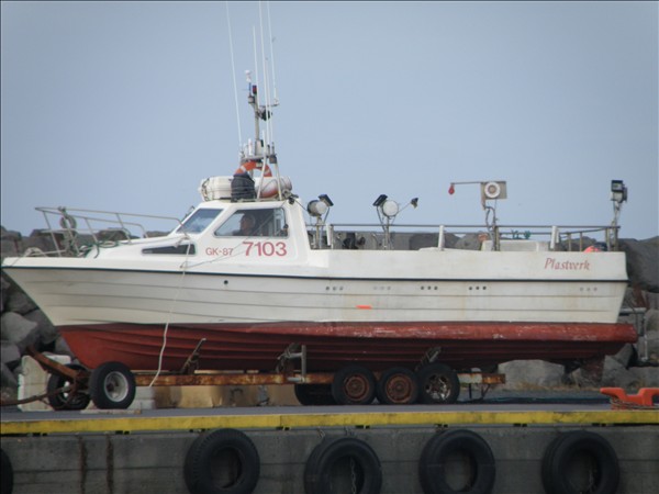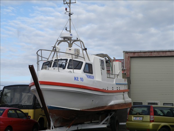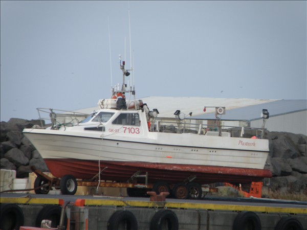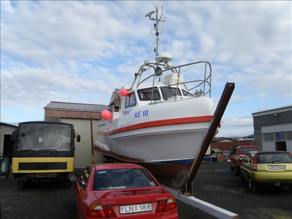 Þessi bátur kom í gær að höfuðstöðvum Sólplasts í Sandgerði í breytingar og til viðgerðar.