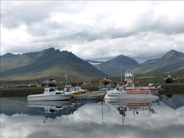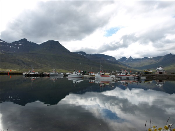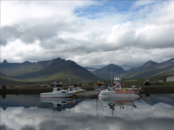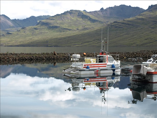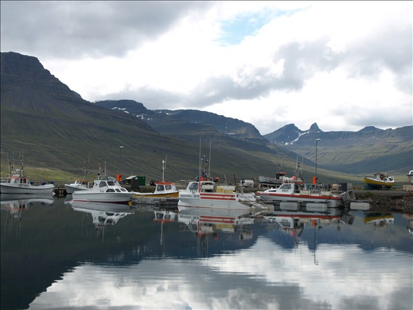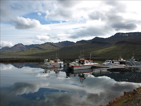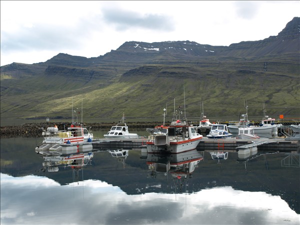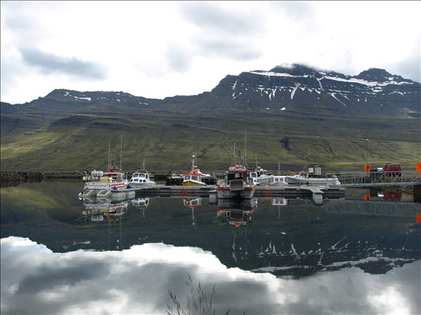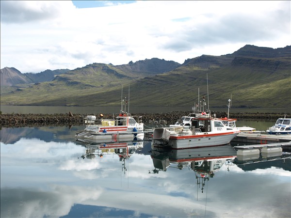 Smábátahöfnin á Fáskrúðsfirði í gær - ótrúlega flott endurspeglun