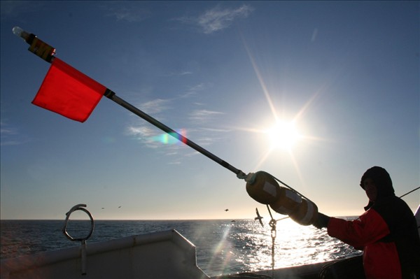 Línuveiðar: Baujan látin fara á línubátnum Sturlu GK frá Grindavík er línan var lögð í Seyðisfjarðardýpi á Austfjarðarmiðum haustið 2006.