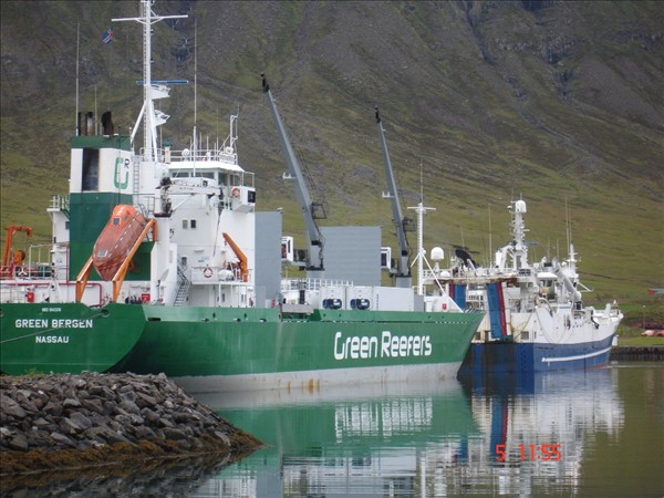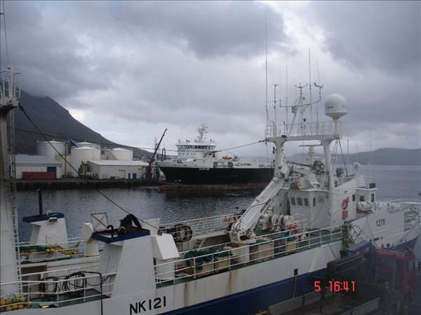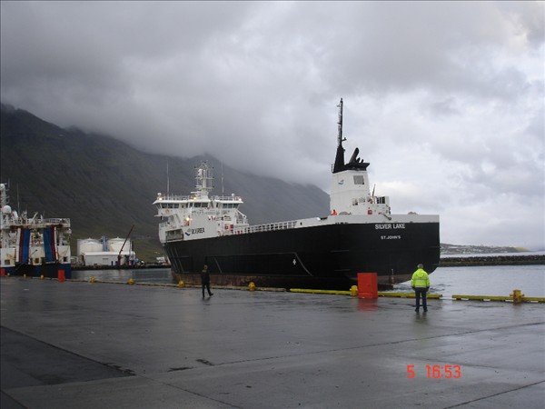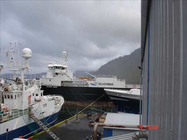Silver Lake kom í nótt til Neskaupstaðar og beið út á firði þangað til seinnipartinn að það komst að bryggju þegar Green Bergen fór. Á myndunum af Silver Lake að það sést líka í Bjart NK og stefnið á Beitir NK