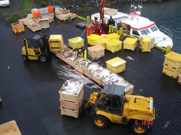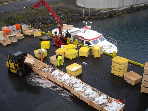 Bergur Eggertsson hjá Nesfisk ehf fylgist hér vel með