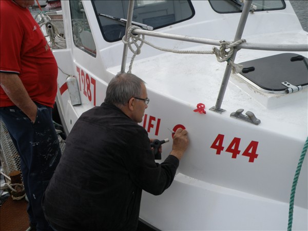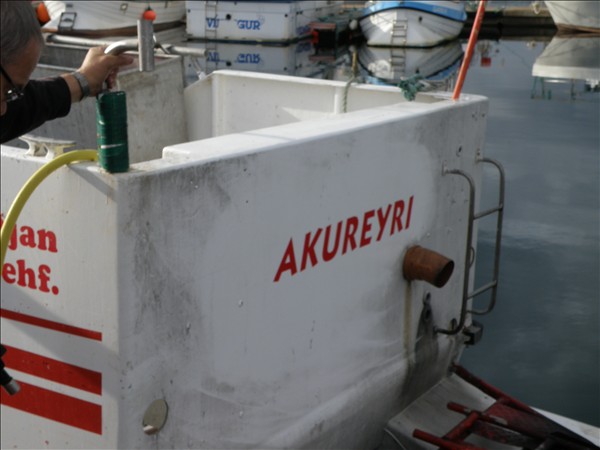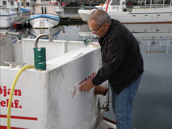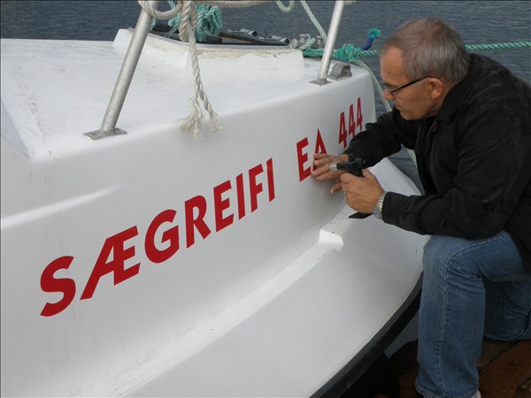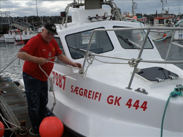 Borgar Ólafsson, skiltagerðamaður losar GK af bátnum