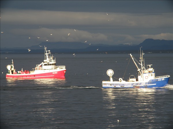 1811. Askur GK 65 (sá blái) og 1636. Farsæll GK 162. Virðist Askur hafa dregið sólargeislan meira að sér en Farsæll.