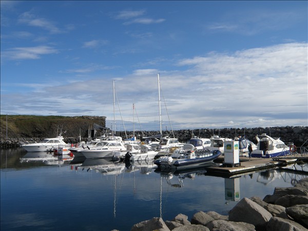 Til viðbótar þeim bátum sem ég taldi upp undir fyrstu myndinni, eru þessir við hafnargarðinn: 500. Gunnar Hámundarson GK 357, 1516. Fjóla SH 121, 1575. Njáll RE 275, 1905. Berglín GK 300 og 2262. Sóley Sigurjóns GK 200 © myndir Emil Páll, 3. sept. 2011