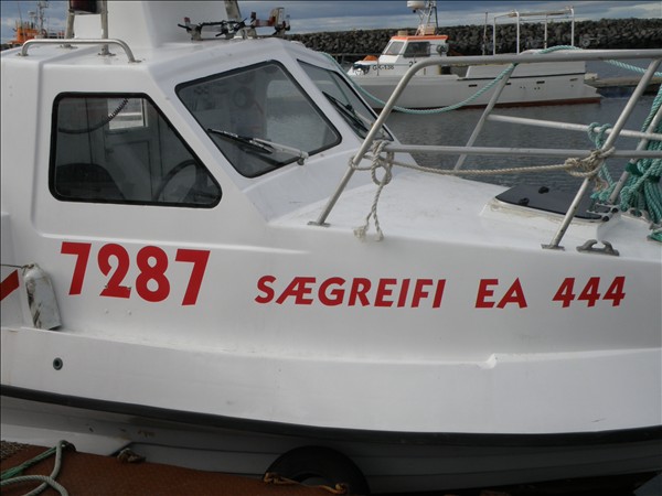 7287. Sægreifi GK 444, í Sandgerði í dag, rúmri klukkustund áður en búið var að skipta um heimahöfn og skráninganúmer
