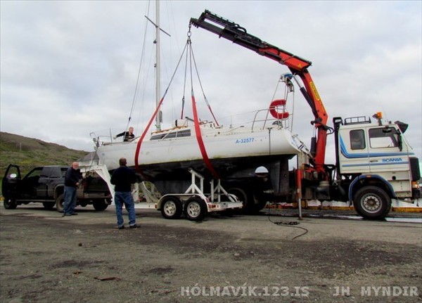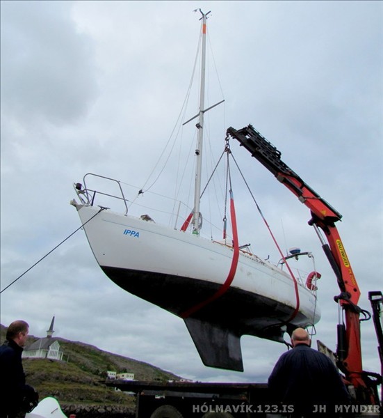 Ippa sett á vagn á Hólmavík, til að flytja suður © myndir Jón Halldórsson, holmavik.123.is 31. ágúst 2011