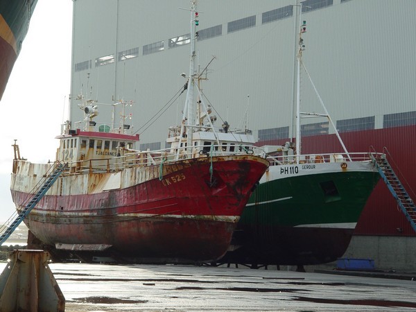 124. Tjaldanes GK 525 og 1125. Gerður ÞH 110 í Njarðvíkurslipp fyrir nokkrum árum, en þarna er verið að dæla olíu af Gerði yfir í Tjaldanesið og síðan sigldi Tjaldanesið í pottinn © mynd Emil Páll