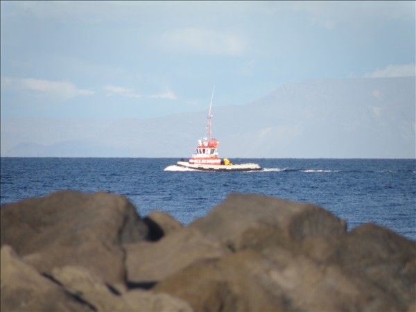 Hér sjáum við Magna flytja hafnsögumanninn í land, eftir að búið var að hjálpa Torm Gunhild úr Helguvík núna á sjötta tímanum í kvöld
