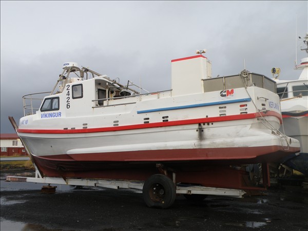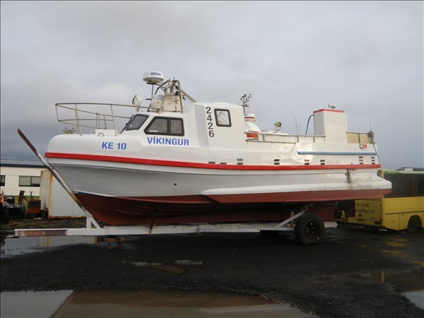 Þessi bátur var tekin út úr húsi hjá Sólplasti ehf. í Sandgerði í gærkvöldi. Framkvæmdar höfðu verið endurbætur og viðhald á bátnum, m.a. vegna leka og eins þar sem hann þótti ekki alveg nógu góður á sjó og því voru gerðar á honum nokkrar breytingar, s.s. lenging á stokkum og m.fl.