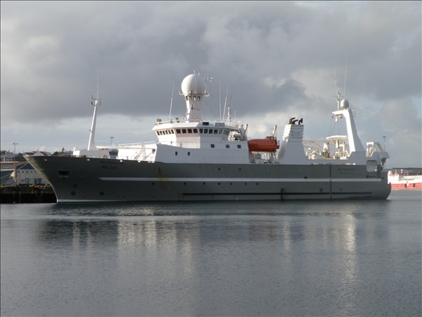 Undanfarnar vikur hafa hafrannsóknarskipin Bjarni Sæmundsson og Árni Friðriksson legið bundn við bryggju í höfuðborginni, vegna verkfalls. Hvort málin séu eitthvað að þokast veit ég eigi. Hitt veit ég að í færslunni hér á fundan birti ég mynd af Bjarna Sæmundssyni og nú kemur mynd af hinu verkfallsskipin þ.e. 2350. Árni Friðriksson RE 200, í Reykjavíkurhöfn í gær © mynd Emil Páll, 20. okt. 2011