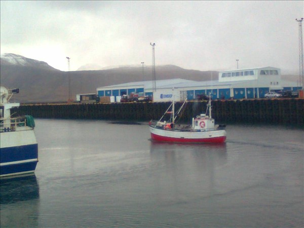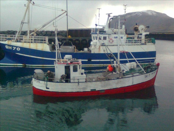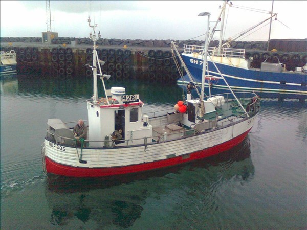 Hér sjáum við Bátalónsbátinn Skvettu fara í dag frá Rifshöfn áleiðis til nýs útgerðarstaðar á Bíldudal.