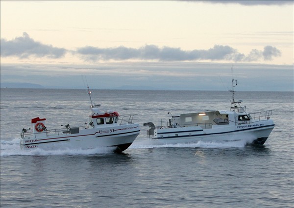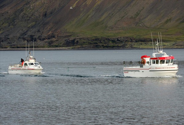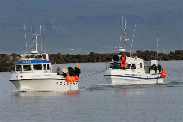 2762. Særún SH 86, dregur 2504. Geisla SH 41, að landi © mynd Gylfi Scheving