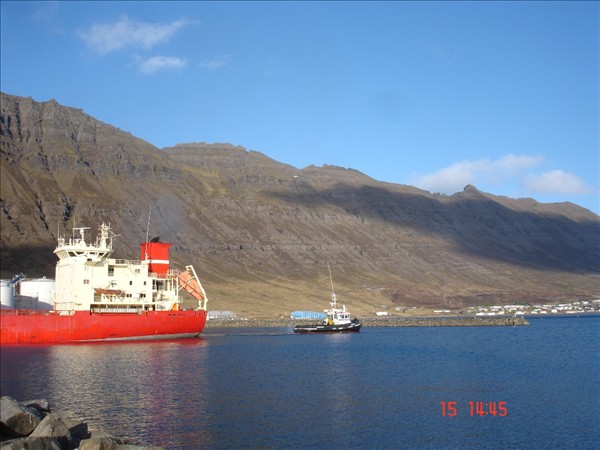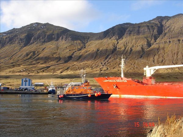 Hér er myndasería af Lappoian Reefer þegar skipið fór í dag frá Neskaupstað, en þröngt er að fara með svona stór skip inn og út úr höfninni en snúa þarf skipinu um 90 gráður við vestari hafnargarðinn. Myndir og texti Bjarni Guðmundsson