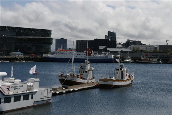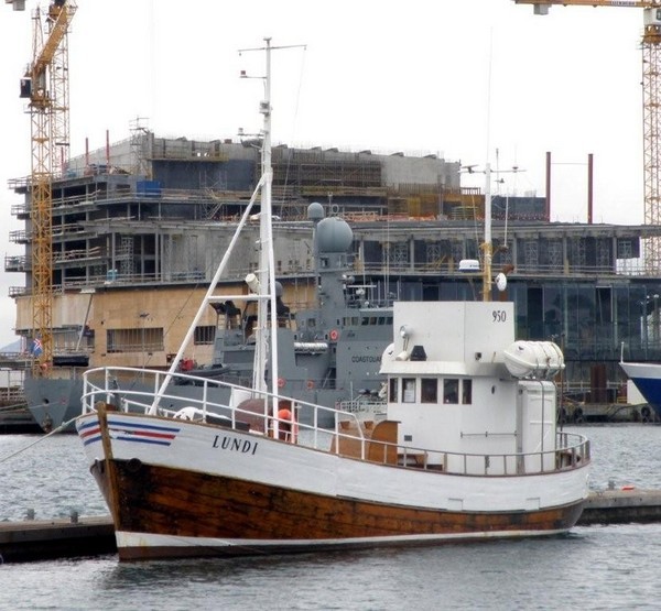 950. Lundi RE 20 (sá til vinstri, en snýr stefninu að okkur), í Reykjavíkurhöfn © mynd Emil Páll, 2. júní 2011