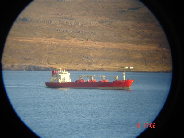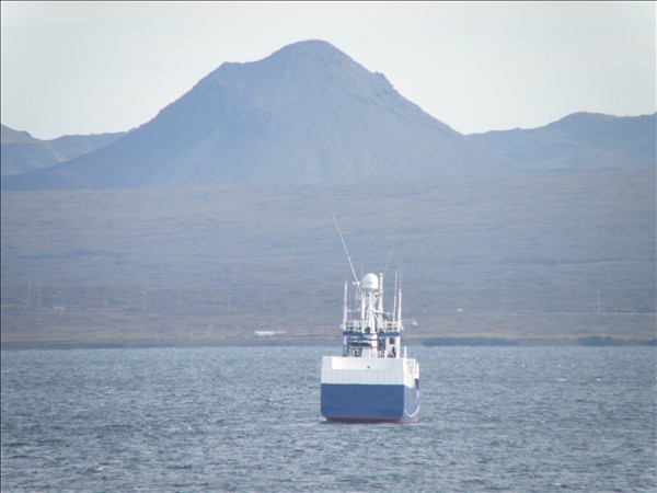 Onego Arkhangelsk, í vari á Stakksfirði í morgun © mynd Emil Páll, 8. okt. 2011