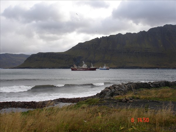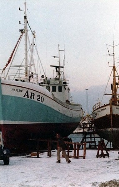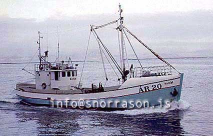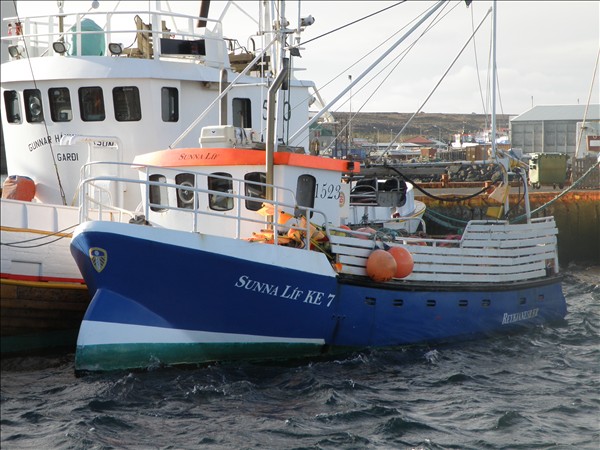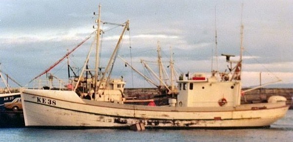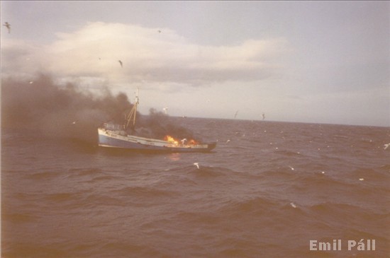 Á meðfylgjandi mynd sem Jón Páll Ásgeirsson stýrimaður tók vestur af Sandgerði eru Haukur bátsmaður og hásetarnir, Gunnar, Heimir Týr og Þorgeir.