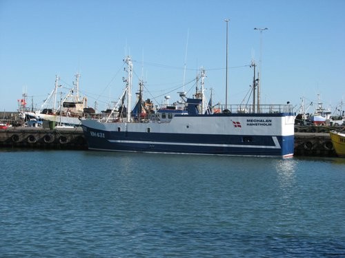 Hér sjáum við kannski of vel kulmula kominn á markaðinn í Hasntholm og var bíða eftir uppboði. Hér sjáum við Sandvik HM-123. Þessi var nú smíðaður á Akureyri hét held ég upphaflega Tjaldanes. En þennan gerði Jónatan Hallgrímsson út frá Hanstholm, held hann sé hættur og fluttur heim. Hann átti einnig þennan fyrir innan Sandvik hann hét Stromsvik.