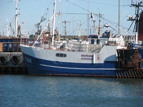 Hér sjáum við gamla Vestbank þetta er danskur rækjubátur, það eru feðgar sem eiga Vestbank og þegar þessi mynd var tekin voru þeir að bíða eftir nýsmíði sem er löngu komin í notkun í dag. Eru allt árið á rækju.