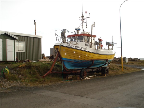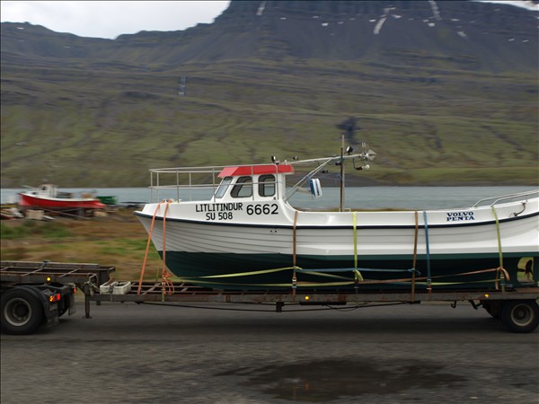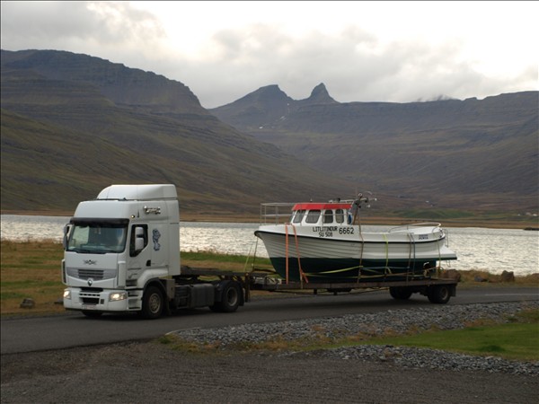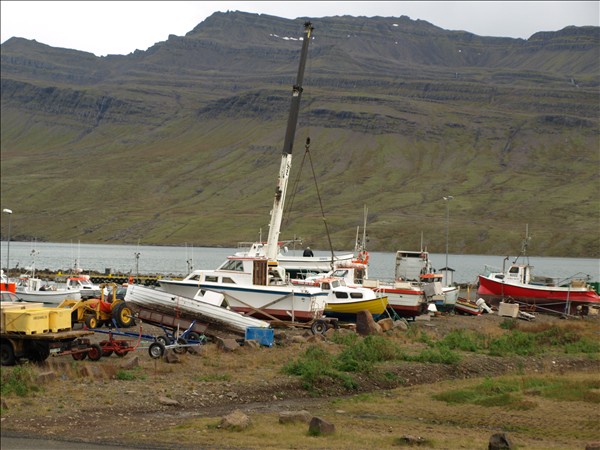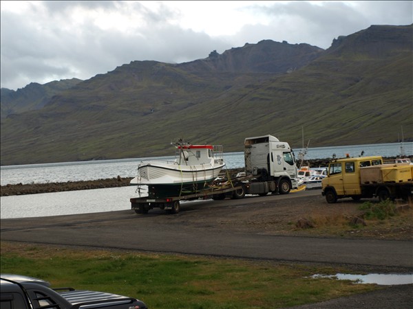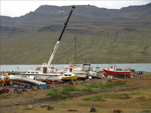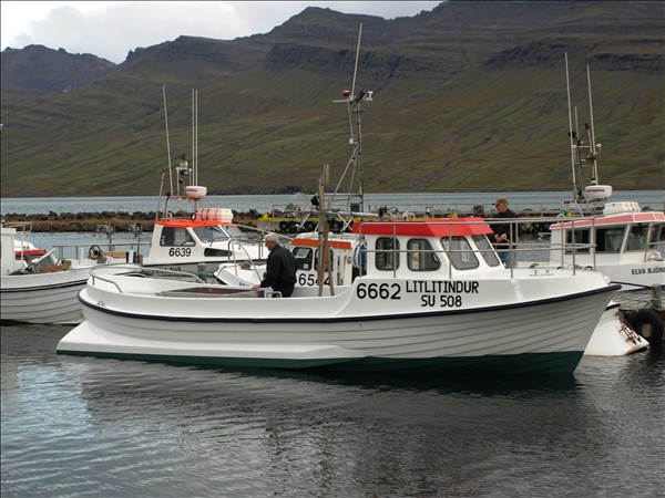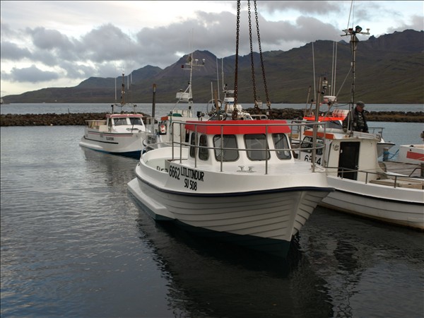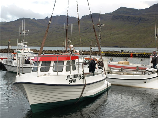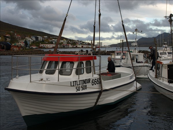 Framhaldsaga af Litlatindi. Myndir teknar við smábátahöfnina á Fáskrúðsfirði sennipartin í dag þegar hann kom heim og var sjósettur. Gaman að þessu þar sem innan við sólarhringur leið frá því hann fór frá Sandgerði og það þrátt fyrir að mikið óveður hafi verið í upphafi ferðar.