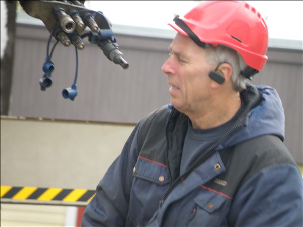 Kraninn gerir sig kláran til að lyfta bátnum að vagninum