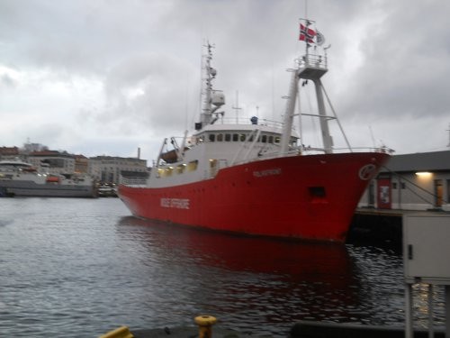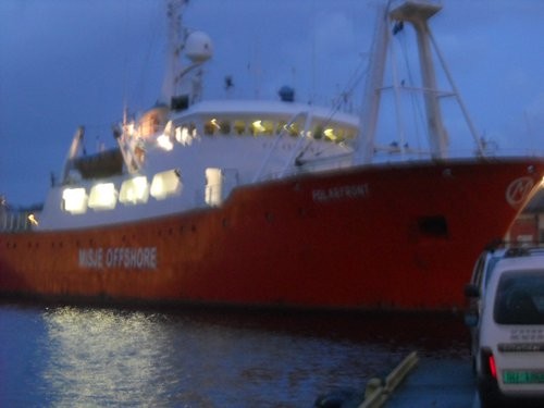 Betri mynd tekin seinna um daginn. Polarfront hefur nú sennilega lent í vondum veðrum því þetta er gamalt veðurskip sem var staðsett úti norska hafi 66* N og á 2* E. Það var byggt sem veðurskip 1976 og var í drift út árið 2009 og var lengi vel eina veðurskipið sem var í drift. Það var að jafnaði 340 daga á sjó og voru áhafnarskifti mánaðarlega og voru þá einn til tveir dagar í höfn. Og í byrjun okt á hverju ári fór skipið í slipp og var þá að jafnaði í eina viku. Í áhöfn voru 16 og voru 8 á hvorri vakt. skipið hélt sig alltaf á svæði sem 1X1 gráða. Hugsa að á þessu skipi hafi verið margir dásamlegir bræludagar.