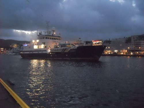 Hér sjáum við Polarfront snemma á föstudagsmorgunin í Bergen.