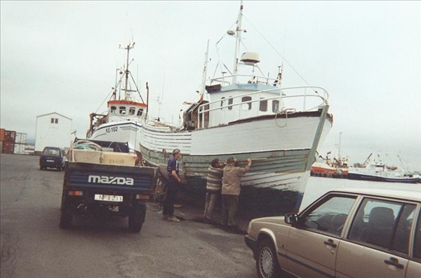 Í gær birti ég efri myndina og hina síðan með sögunni í nótt. En með efri myndinni sagði ég að þarna væru hlið við hlið þrír bátar sem allir hefðu sokkið. Nú er komið í ljós að ef neðri myndin er skoðuð vel að fjórði báturinn í röðinni og sá sem er næst bryggjunni sökk einni. Þarna hét hann 1453. Sigurvin GK 51, en slitaði frá bryggju á Bakkafirði 10. feb. 1989, rak upp í garðinn og sökk. Náð upp aftur þá sem Seigur NS 923. Hann var síðan tekin af skrá mörgum árum síðar, en hans síðasta nafn var Jón Björn NK 111 og hefur legið um tíma á Stöðvarfirði þar sem átti að lagfæra hann til að gera úr honum grip á sjóminjasafni © myndir Emil Páll