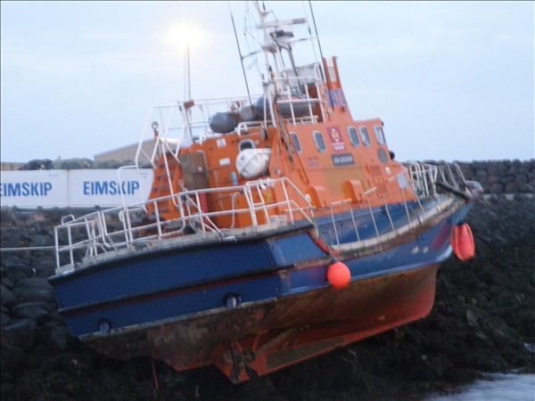 Björgunarskipið slitnaði frá og rak upp í fjöru