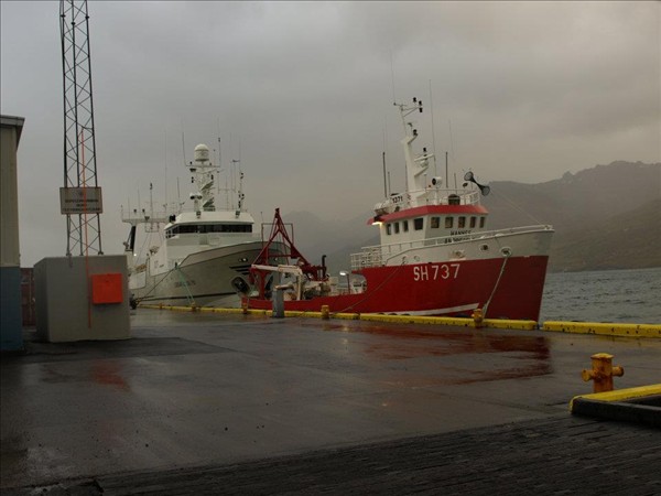 2734. Vöttur og stýrislausa skipið, Alma, Fáskrúðsfirði í dag © mynd Óðinn Magnason, 6. nóv. 2011