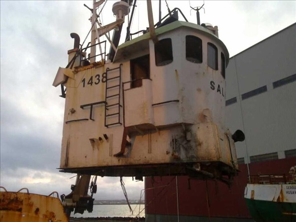 Húsið farið af 1438. Sölku GK 79, í Njarðvikurslipp í morgun © mynd Bragi Snær 4. nóv. 2011