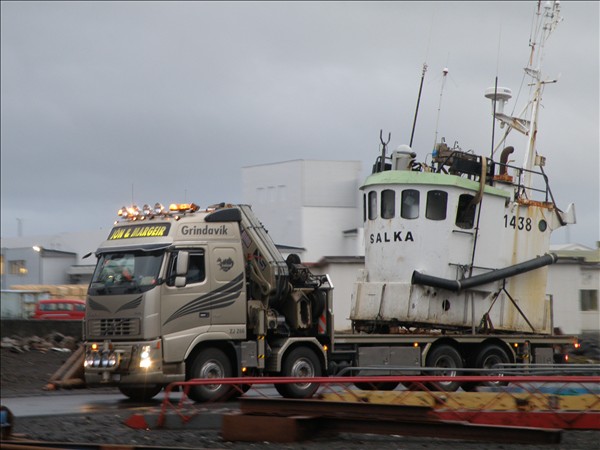 Húsið komið á bílinn og húslaus báturinn til hliðar © mynd Emil Páll, 4. nóv. 2011