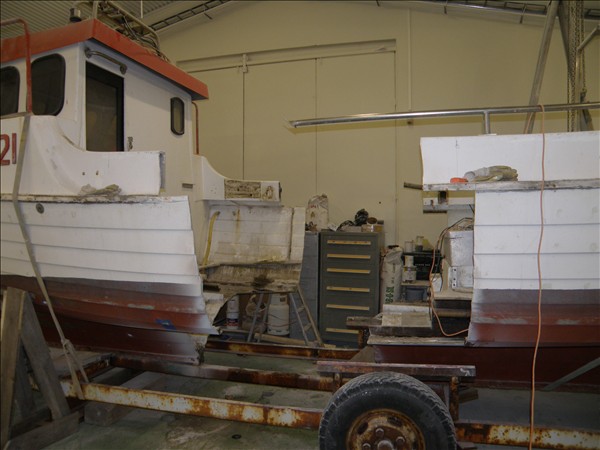 6821. Sæúlfur GK 137, í tveimur pörtum hjá Sólplasti ehf. í Sandgerði © myndir Emil Páll, 2. nóv. 2011
