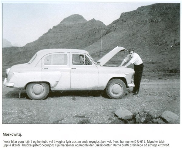 Þessi gamla mynd frá Óðni Magnasyni, sem er af dagatali Fáskrúðfirðingafélagisns, rifjar upp með manni skemmtilegar minningar, sem eru af fyrsta bílnum sem ég eignaðist. Það var um leið og ég fékk bílprófið að ég keypti mér Moskovitsj, bíl af Bifreiðum og landbúðarvélum í Reykjavik. Já hann var nýr og meira segja eina bílategundin sem kom í kassa til landsins. Fékk maður því öflugann trékassa með bílnum. Að vísu var það ekki eins og þessi á myndinni heldur næsta útlit þar á eftir.
