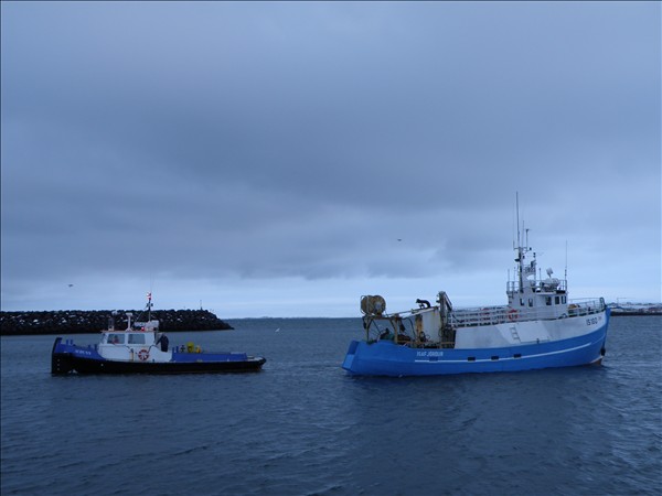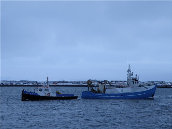 2043. Auðunn dregur 923. Orra ÍS 180 inn í Njarðvikurhöfn © myndir Emil Páll, 28. nóv. 2011