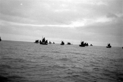 Giska á að þessi mynd sé a.m.k. aldargömul og sýnir færeyskan skútuhóp á Selvogsbanka.