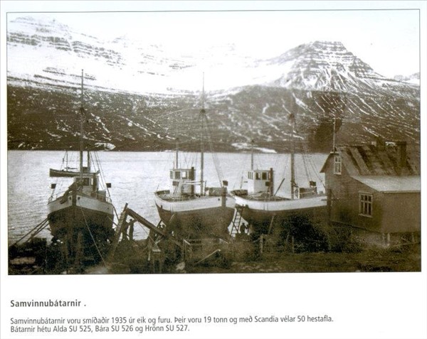 Samvinnubátarnir, 894. Alda SU 525, 318. Bára SU 526 og 584. Hrönn SU 527 © gamlar myndir frá Óðni Magnasyni, af dagatali Fáskrúðsfirðingafélagsins,