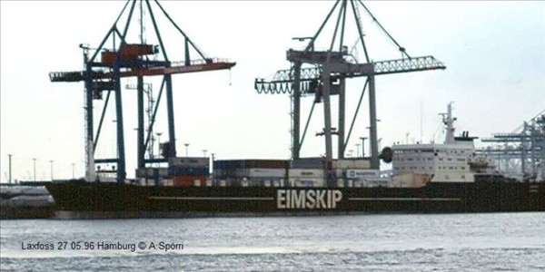 1974. Laxfoss, með heimahöfn í Reykjavík, í Hamburg © mynd shipspotting, Andreas Spörri, 27. júní 1996. 5.754 tonn seldur úr landi til Antiqua 19. ágúst 1996