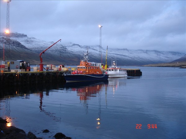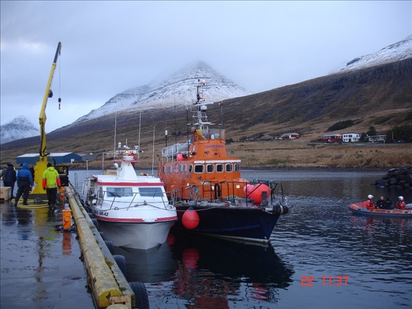 Dóri GK á strandstað og eftir að hann komst á flot þetta er fjórða útlallið F1 Rauður á Hafbjörgina síðan 16 Sept en 16 Sept var útkall vegna Lágeyjar ÞH sem strandaði í Seyðisfirði síðan 12 Nov er það Von GK með lekt vélarúm svo 21 Nov er það Sigrún SU sem strandaði í Fáskrúðsfirði og 22 Nov Dóri GK strandaður að sunnan verðu í Stöðvarfirði með 5 tonn af fiski sem landað var úr bátnum eftir að hann kom að bryggju kv Bjarni G