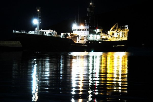 Bjarni Guðmundsson tók margar syrpur sem sýndar verða í kvöld og tengjast strandi Dóra GK í nótt. Hée kemur sú fyrsta og sýnir er Auður Vésteins GK 88 kíkti við á strandstað.