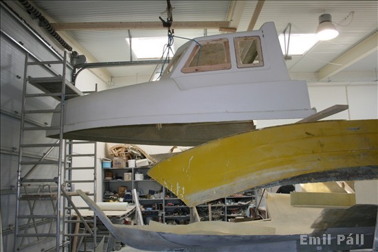 Hér sést þegar gamli báturinn er að falla inn í þann nýja 24. maí 2011
