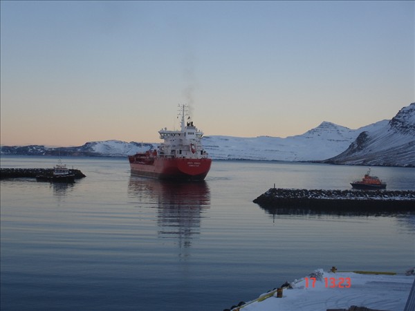 Sten Frigg, Vöttur, Hafbjörg, Spói NK 64 og Silver Lake, á Neskaupstað í gær © myndir Bjarni Guðmundsson, 17, des. 2011