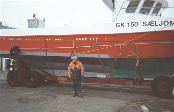 2050. Sæljómi GK 150, í Innri - Njarðvík og í Vogum. Maðurinn sem stendur við bátinn á mynd 2 er Grétar Pálsson eigandi hans á þeim tíma © myndir úr safni Sólplasts